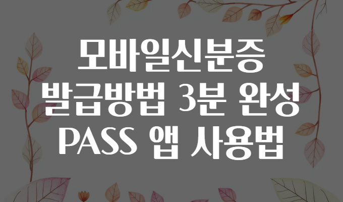 PASS 앱은 국내 이동통신 3사(SK텔레콤, KT, LG U+)가 공동으로 제공하는 본인인증 앱으로, 모바일신분증 발급도 이 앱에서 쉽고 안전하게 할 수 있어요! 📲✨