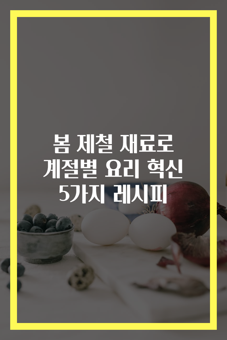 메타 설명: 봄 제철 재료를 활용한 건강하고 맛있는 5가지 요리 레시피를 소개합니다. 봄의 신선함을 느껴보세요!
