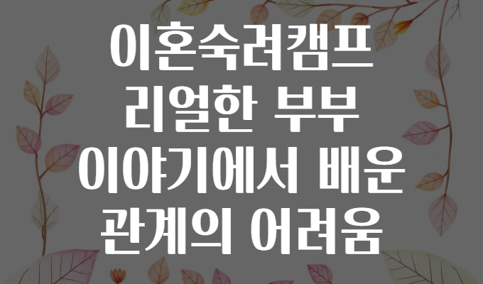 🤔 이혼숙려캠프, 정말 필요한 시간일까? 리얼 부부 이야기에서 배운 관계의 어려움