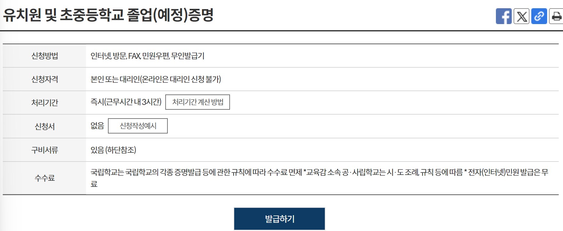 발급이 가능한 경우에는 초/중/고 졸업증명서는 온라인으로도 발급/인쇄가 가능합니다.
