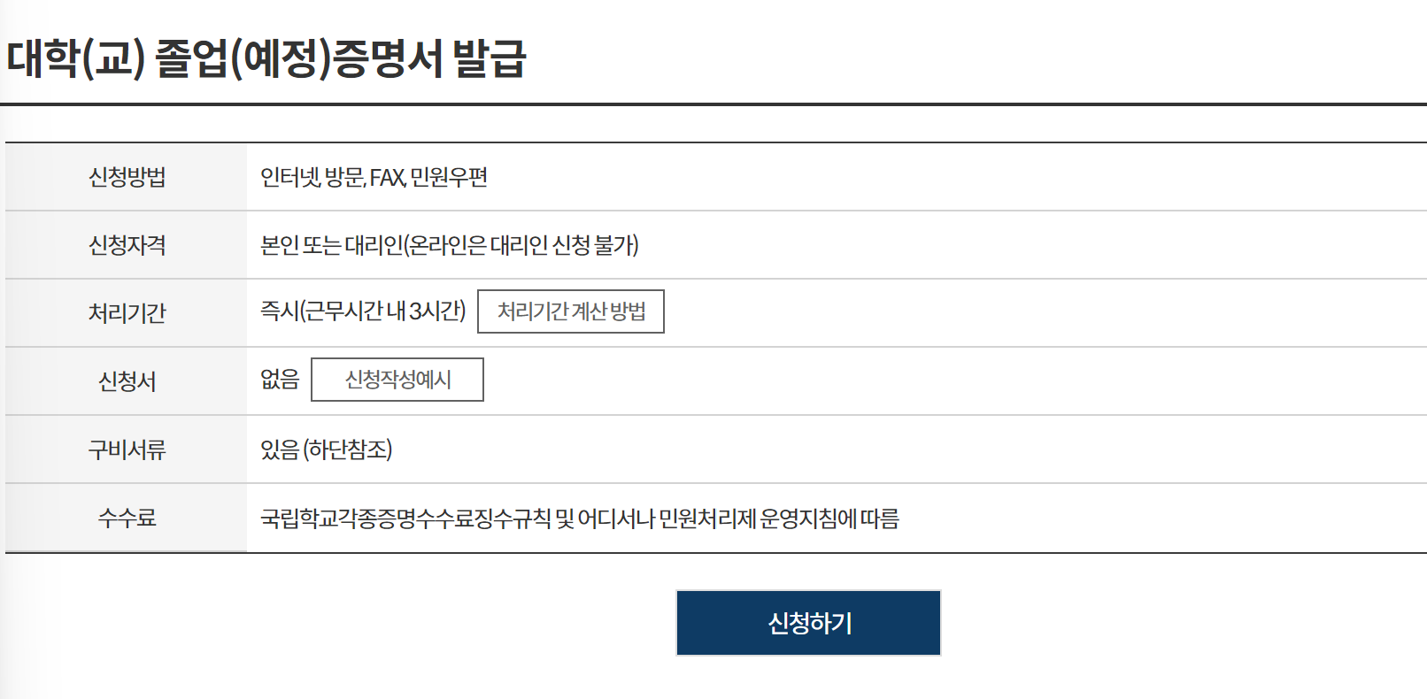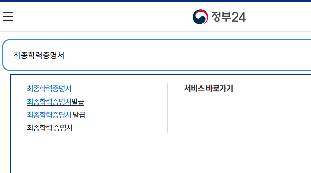 우선 위의 링크를 클릭하시면 정부 24 대학교 최종학력 증명서 발급으로 이동합니다.
